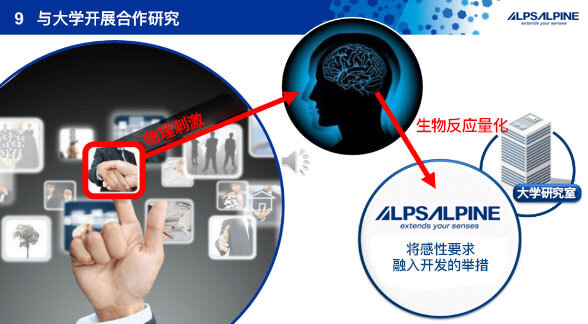 Alps Alpine还推进将“力反馈技术”等HMI的触觉技术诀窍总结成为各个层次的技术体系的举措。与多家大学研究室开展产学合作,不断研究“感性工学”。