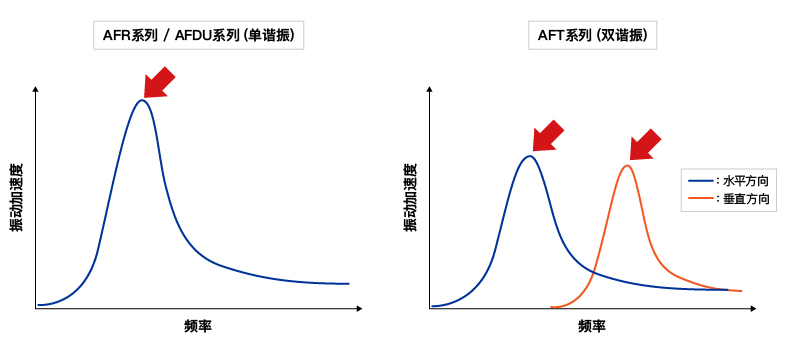 AFR系列 / AFDU系列有一个山峰,而AFT系列是双谐振型,因此有两个山峰。