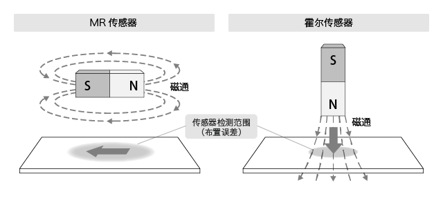检出磁场的方向不同。当表面贴装有各类元器件时,霍尔传感器检测贴装面的垂直磁场,而MR传感器检出水平磁场。因此磁与传感器的位置关系也会发生变化。