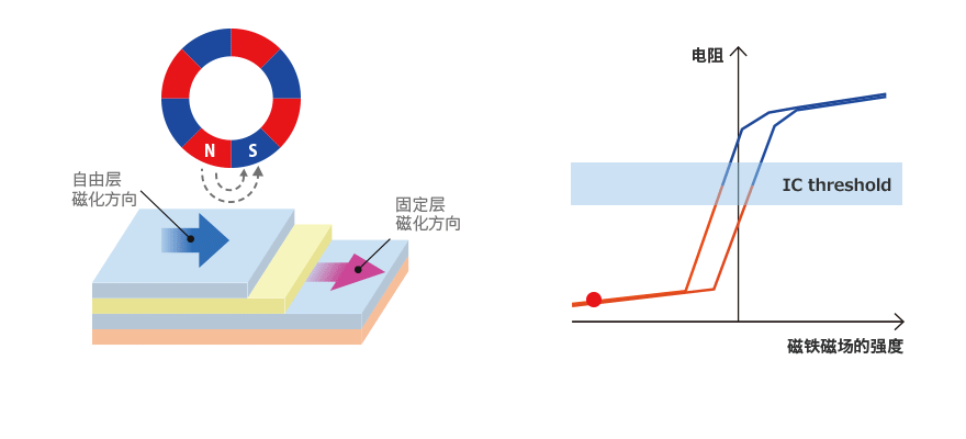 基本工作原理和磁式开关相同,将磁场变化转变为电阻,再将其转换为电压,并以脉冲信号的形式进行数字输出。