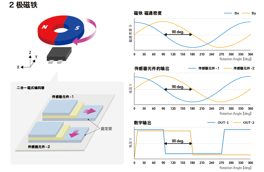 此次介绍了磁式传感器作为编码器使用的情形,下次将介绍应用于角度传感器的示例。