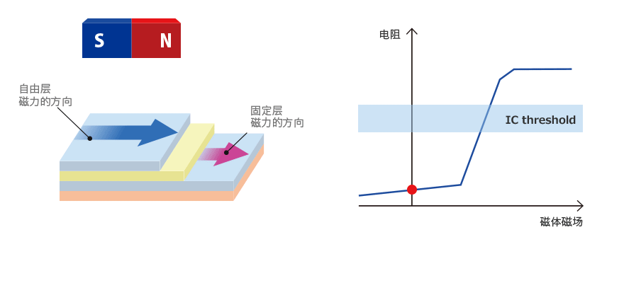 利用上述MR传感器的特性,与磁铁相结合的开关为磁式开关。