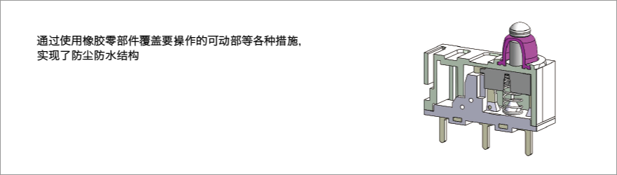 这是一种可动接点摩擦接触固定接点的结构,在接触的同时去除接点间的微小异物与覆膜(自我清洁效果),具有用于微小电流的高接触可靠性。