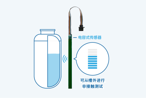 虽然通常是通过容器内的浮子或类似装置来检测容器内的液位(即所谓的水位),但如果容器是由树脂等非金属材料构成的,则可以利用电容技术从容器外非接触地测量液位。