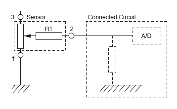 - Resistive position sensors are constructed in a way that contact resistance (R1 below) occurs within the sensor. To reduce the effect of contact resistance (R1), set the impedance within the circuit connected to the output terminal to greater than 1MΩ.