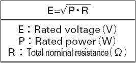 - The rated voltage corresponding to the rated power shall be determined by the following equation. When the resulting rated voltage exceeds the maximum operating voltage of a specific resistor, the maximum operating voltage shall be taken as the rated voltage.