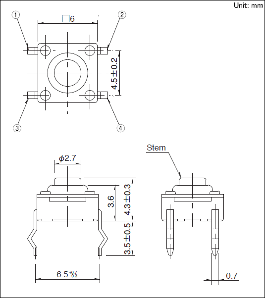 - The sizes of holes and patterns on a PC board for mounting a switch, be asper the recommended dimensions in the product drawings.