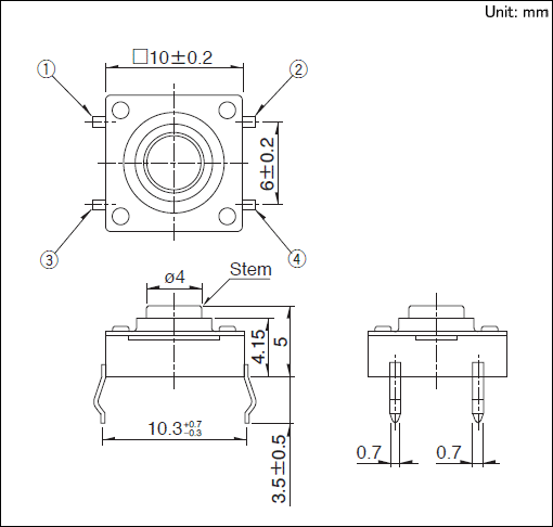 - The sizes of holes and patterns on a PC board for mounting a switch, be asper the recommended dimensions in the product drawings.