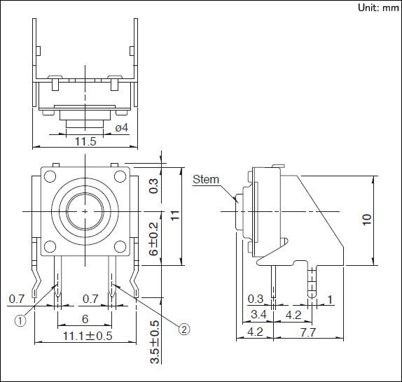- The sizes of holes and patterns on a PC board for mounting a switch, be asper the recommended dimensions in the product drawings.