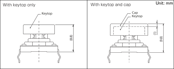 - Be sure to push the center of switch for “without-stem” type. Extreme care is required for a hinge structure type, as the activation point may shift when it is pressed down.