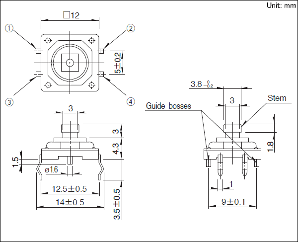 - The sizes of holes and patterns on a PC board for mounting a switch, be asper the recommended dimensions in the product drawings.