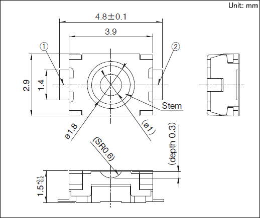 - Be sure to push the center of switch for “without-stem” type. Extreme care is required for a hinge structure type, as the activation point may shift when it is pressed down.