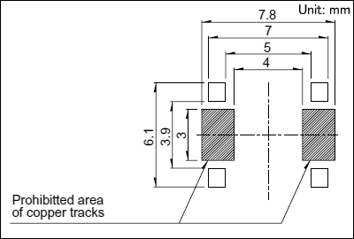 - Through-hole PC board, or a PC board thickness other than the recommendation may cause larger heat stress. Prior verification is highly recommended.