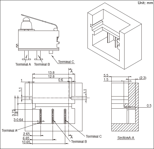 - Use of the switches in a dusty environment may lead the dusts entering through the openings and cause imperfect contact or malfunction. Take this into account for set design.