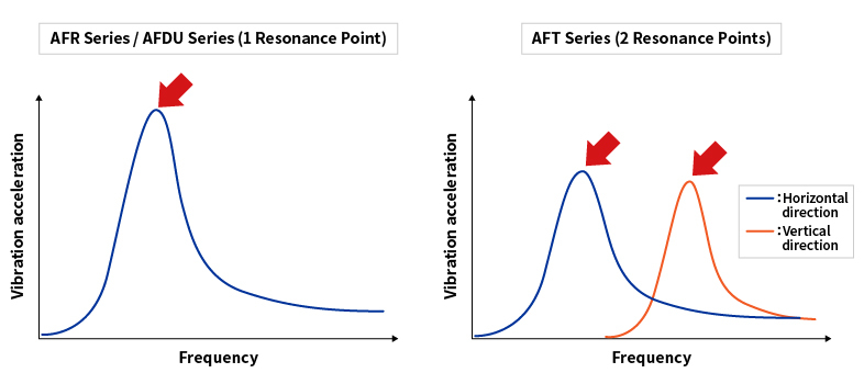 AFR Series / AFDU Series have one peak, while AFT Series has two peaks because it has two resonance points.
