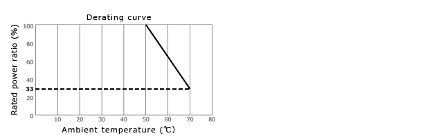 The relationship between ambient temperature and the maximum electric power that can be applied continuously, expressed as a percentage of rated power.