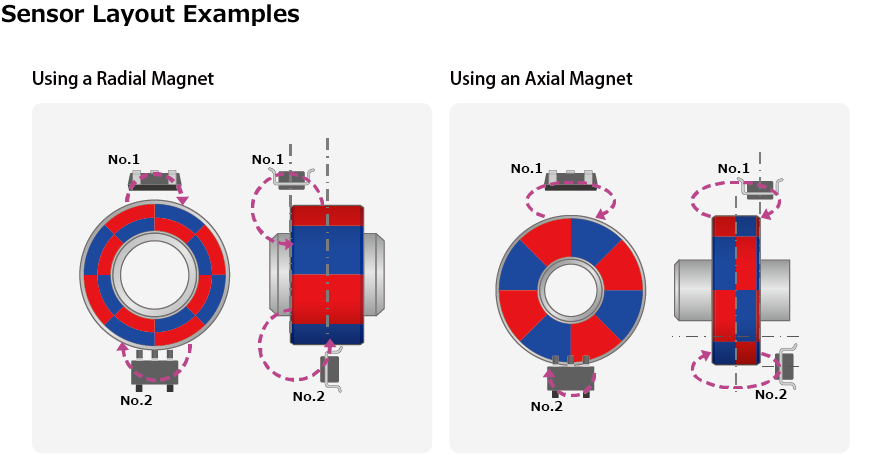 Additionally, because they are always sensing magnetic fields with a 90deg phase difference, sensor layout flexibility is high, allowing greater design freedom.