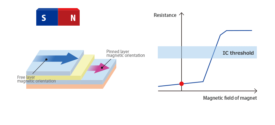 A magnetic switch is a switch combined with a magnet that makes use of the above MR sensor characteristics.