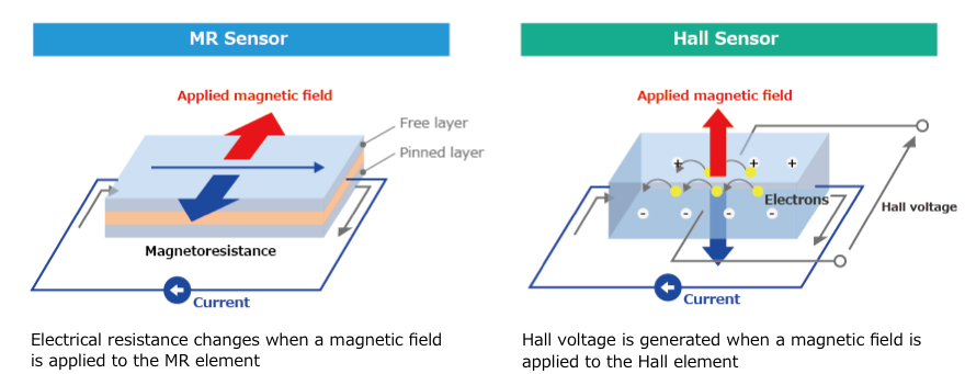 Hall sensors and MR sensors use the characteristics of Hall elements and MR elements respectively to convert changes in magnetism into an electrical signal.