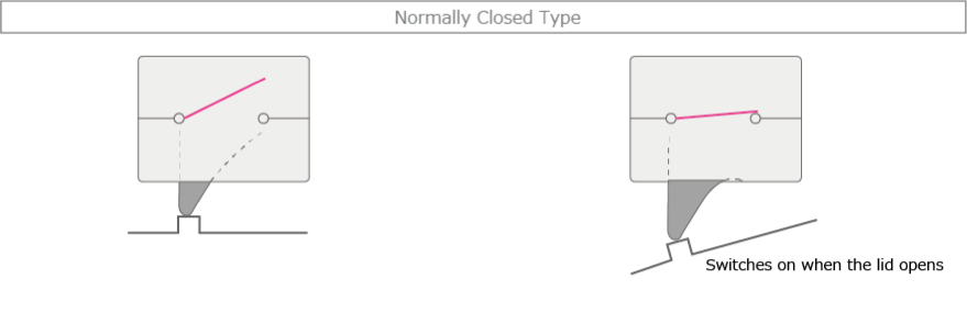 In a lot of switches, the contact usually closes when the lever is pushed, but there are also switches that switch off when the lever is pushed. The former are "normally open," the latter "normally closed" types. For example, normally closed types are used for detecting the opening and closing of lids or doors on mobile devices, electrical vehicles or other equipment for which a reduction in power consumption is sought.
