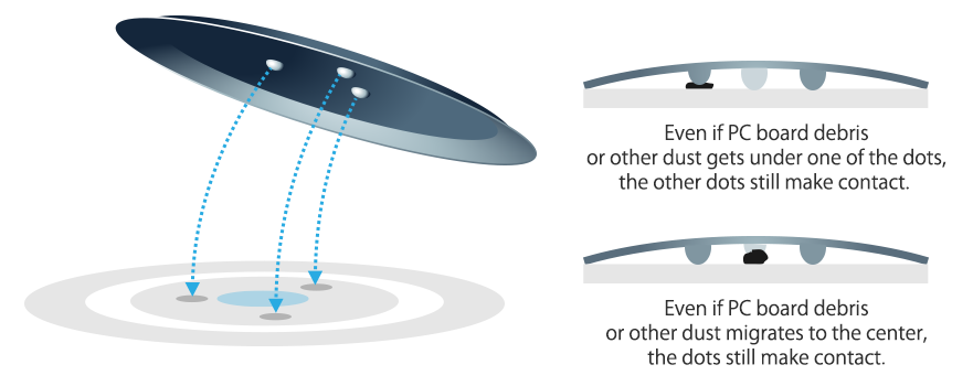 Metal contacts on Alps Alpine's TACT Switch™ and Contactsheet™ products have three small protuberances, or dots, on them.
