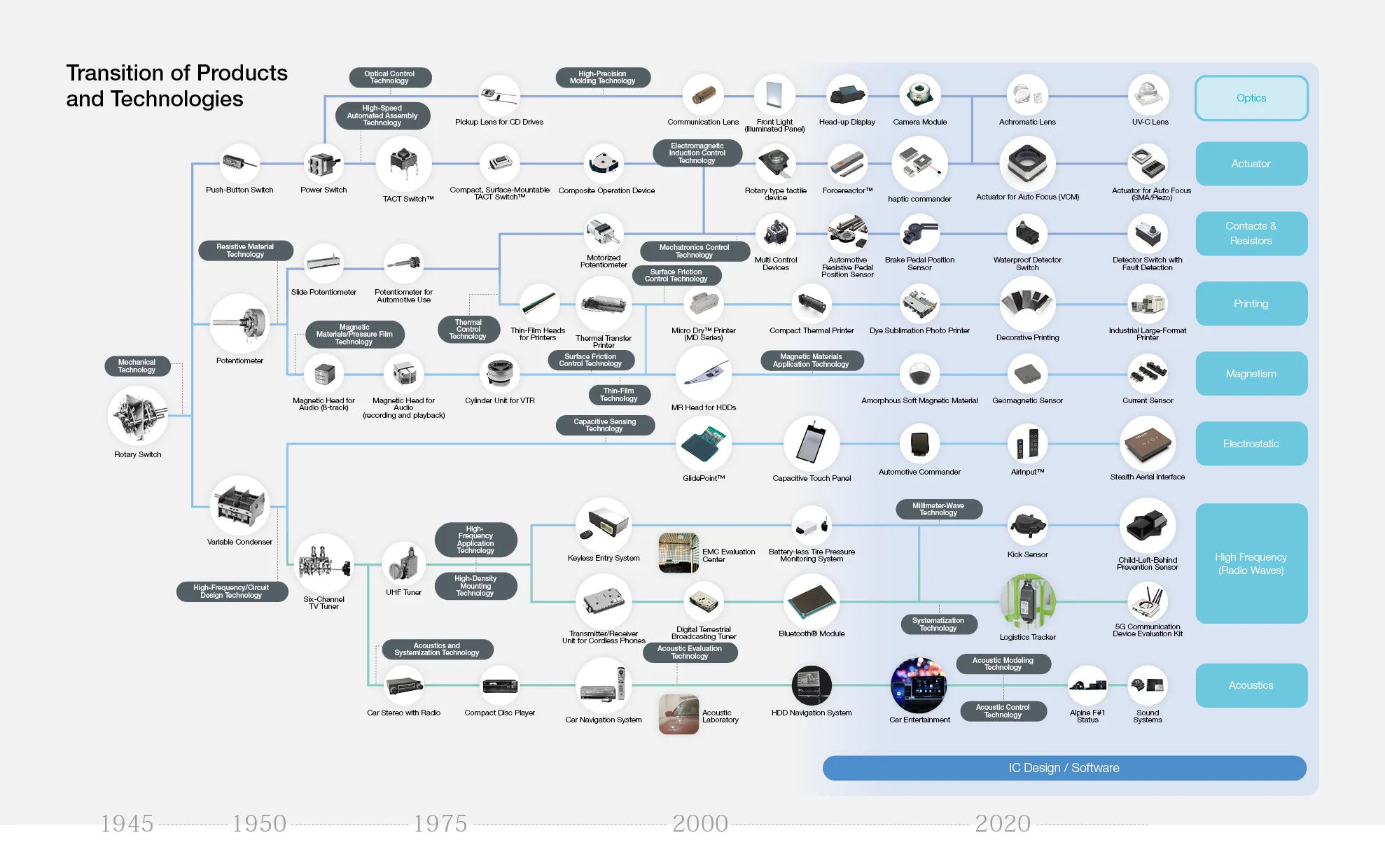 Alps Alpine’s technology originates from our mechanical technology which we use to design the movement and structures of devices, and that was cultivated through the development of rotary switches.