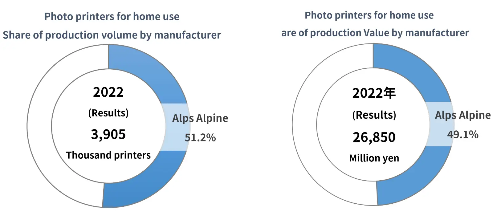 Through accumulating this technology, we obtained a 51.2% share of production volume by manufacturer in the market for photo printers for home use in 2022. In addition, we are also involved in conducting the manufacture and sales of industrial printers as well as sales of films for print use, and have obtained a large share of the market in the industrial field.