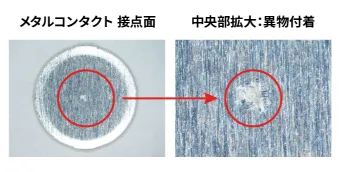 3. メタルコンタクトと固定接点間に異物が固着する。