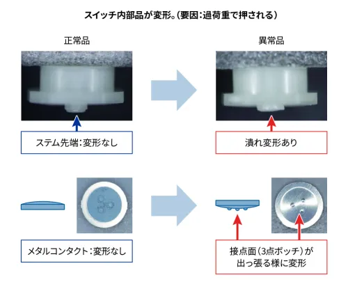タクトスイッチ® に外部から異常な力が加わりON/OFFしない、感触が悪い