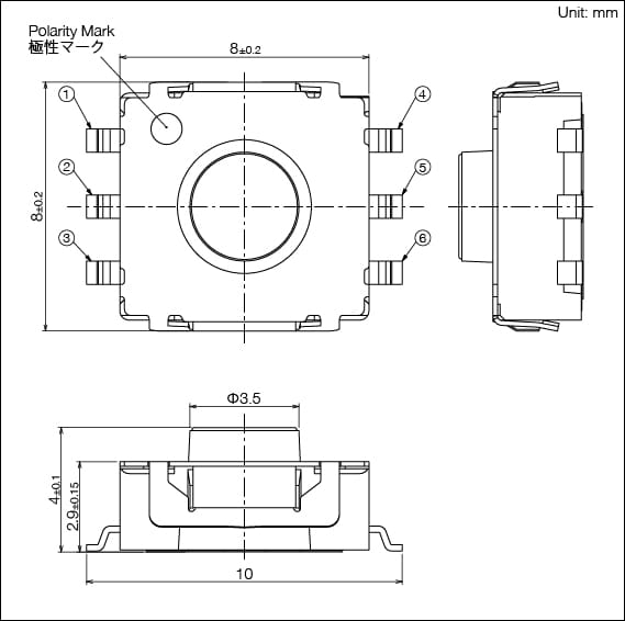 - タクトスイッチ®の上面からフラックスが浸入しないようにしてください。