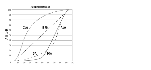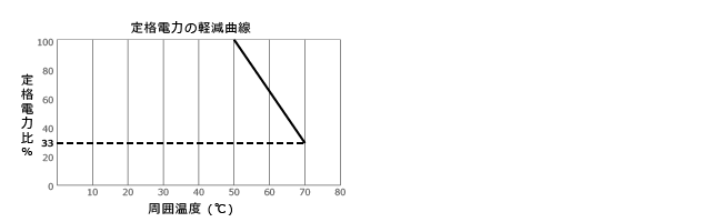 周囲温度と連続して印加できる最大電力の関係をいいます。定格電力に対する百分率で表します。