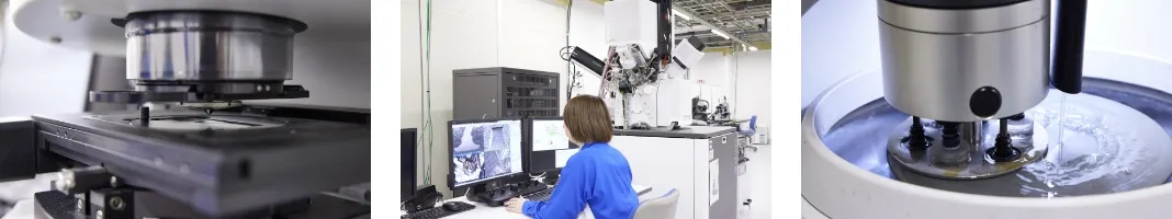 研磨紙、研磨剤を用いて断面加工を行い、内部状態や金属接合状態等の断面分析前処理が可能。