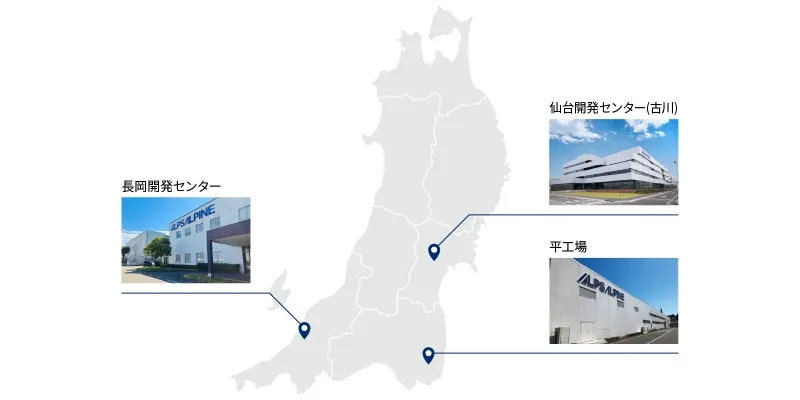 アルプスアルパインの機器分析は、仙台開発センター(古川)、長岡開発センター、平工場の3拠点体制で運営されています。各拠点は物理的には離れていますが、「機器分析技術室」という1つの部署として運営されており、密接な連携のもと分析を行っています。