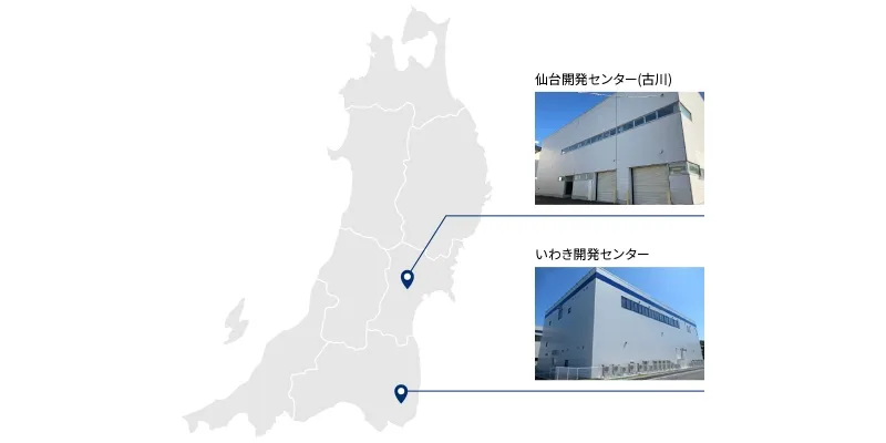 EMC評価は仙台開発センター(古川)といわき開発センターの2拠点で行っています。古川テストラボは、静電技術や電波・高周波技術を搭載した製品のEMC評価に対応する設備を完備しています。一方、いわきテストラボは大型ディスプレイやサウンドシステムといった大規模製品の試験環境を整備し、それぞれの強みを活かした役割分担を実現しています。