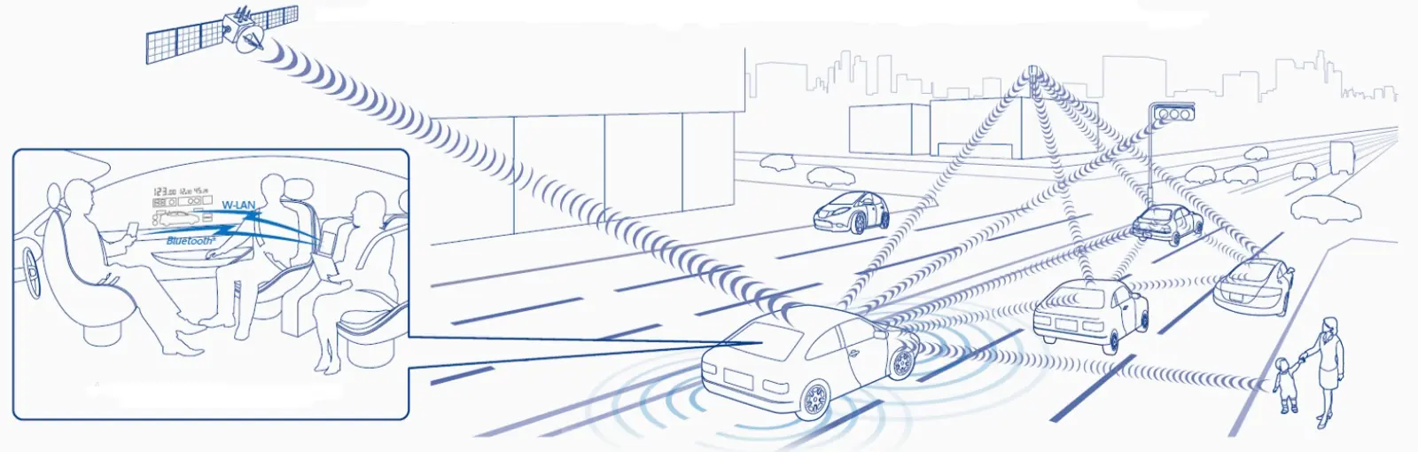 特に電波の通信応用においてはインターネットの普及、スマートフォンの登場など技術革新が進んでいった2000年に、世界で初めてBluetooth®モジュールの認証(Bluetooth®対応製品であることを表記するために必要な認証)を取得するなどBluetooth®市場醸成の一翼を担いました。車載用Bluetooth®機器の分野で世界に認められたその技術力は、現在の主力製品である車載用 Wireless LAN/Bluetooth®コンビネーションモジュールに受け継がれ、スマートフォンと連携したハンズフリー通話と高品位無線オーディオの両立など新たな価値を提供しています。