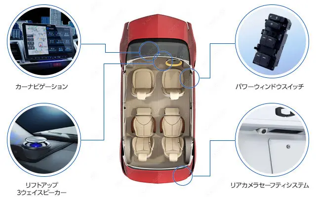 | 電子ミラー | カメラ映像を映し出し、常にクリアな後方視界を確保。 |